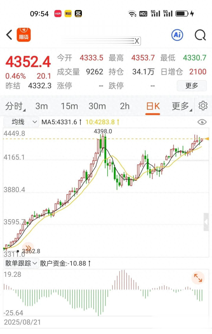 外盘纽约黄金稳步拉升至4352.4