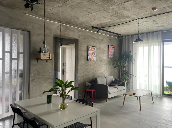 改造小技巧:对于毛坯房来说,水泥地面和墙面容易积灰。为了改善这一问题,屋主特意选择了地坪漆来涂刷地面,罩光漆则用于墙面,既能防尘,又能为空间增添一些温暖的质感。